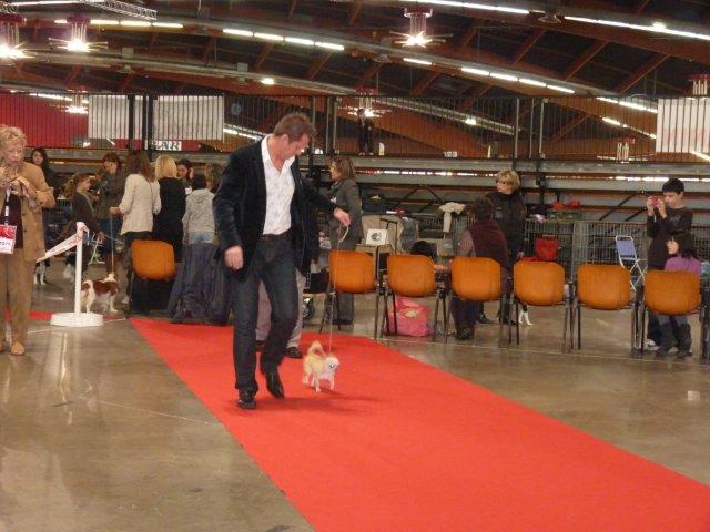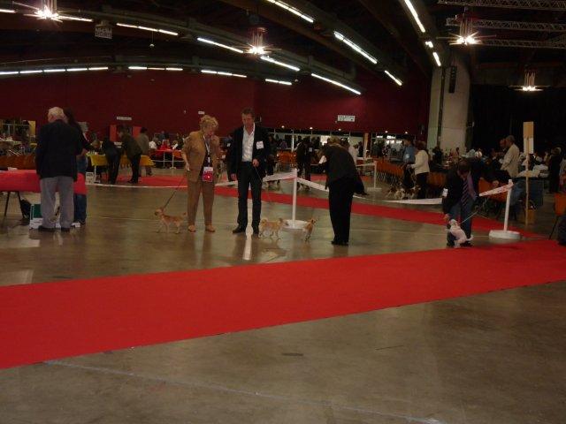 EXPOSITION de PERPIGNAN / MARTORELL 16/17 octobre 2010 La classe ouverte mâle sur le ring devant Mr Larive Patience ! Il faut attendre son tour. 1ère expo pour Dylan des caprices des fées (2ans) et Mme CASANOBAS Fakir passe l'examen Fakir pose. Mr Larive dicte à la secrétaire de ring. Ligne de do s: correcte . Ouf je m'y attendais pas ! Petite ligne droite ligne droite mais vue de l'arrière On continue par un tour de ring solo 2ème excellent classe ouverte , je suis content Sélection en marche Fakir fait des siennes en baissant les oreilles et la queue Fakir obtient RCACS ET RCACIB Petit câlin de félicitations Fiers d'être à cette place Flanelle en piste à Martorell on marche comme on peut Flanelle fait des efforts Au coude à coude! Mr Sanchez surveille toute la morphologie Le juge place la chienne , je laisse faire Décollage pour la piste Flanelle court plus qu'elle ne marche ELLE MARCHE BIEN ! Nous attendons les résultats petit tour pour le meilleur puppy chihuahua Flanelle marche trés bien Alors oui ou non ? eh oui meilleur puppy ! super super Fakir avant de partir Fakir se détend Classe ouverte en piste Pas mal la démarche ! Fakir sur la table Fakir laisse voir ses dents il veut lui arracher ou il les compte ? le juge regarde l'autre chien pour comparer Petit défilé il marche bien le petit mec quand même Fakir sera second Fakir gagne la RCAS et la RCACIB